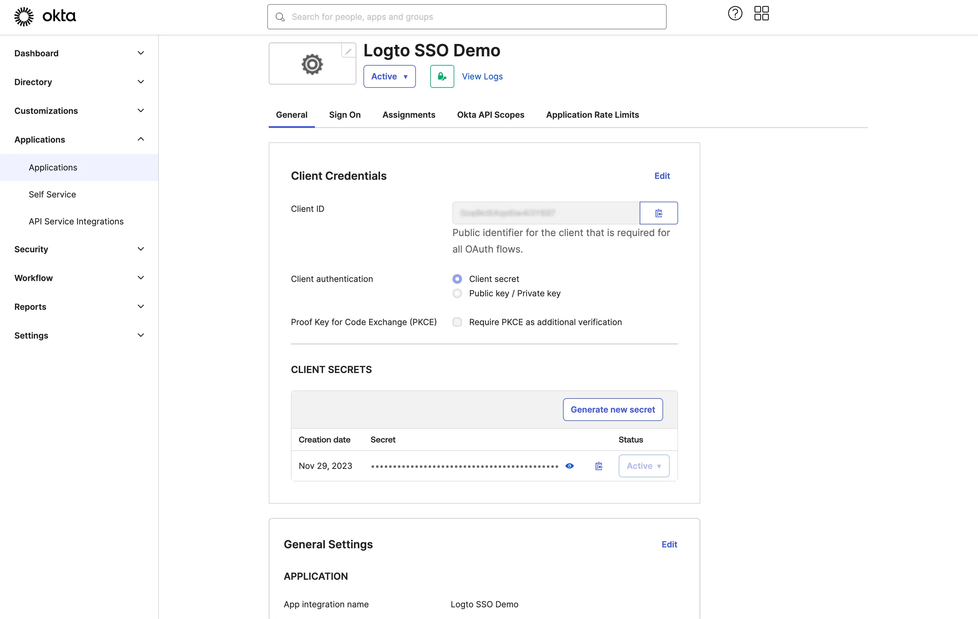 Set up OIDC application on Okta admin portal